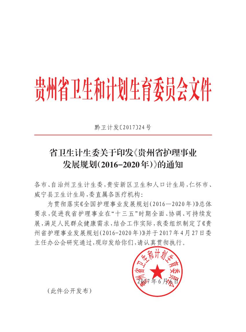省卫生计生委关于印发《贵州省护理事业发展规划(2016-2020年)》的通知