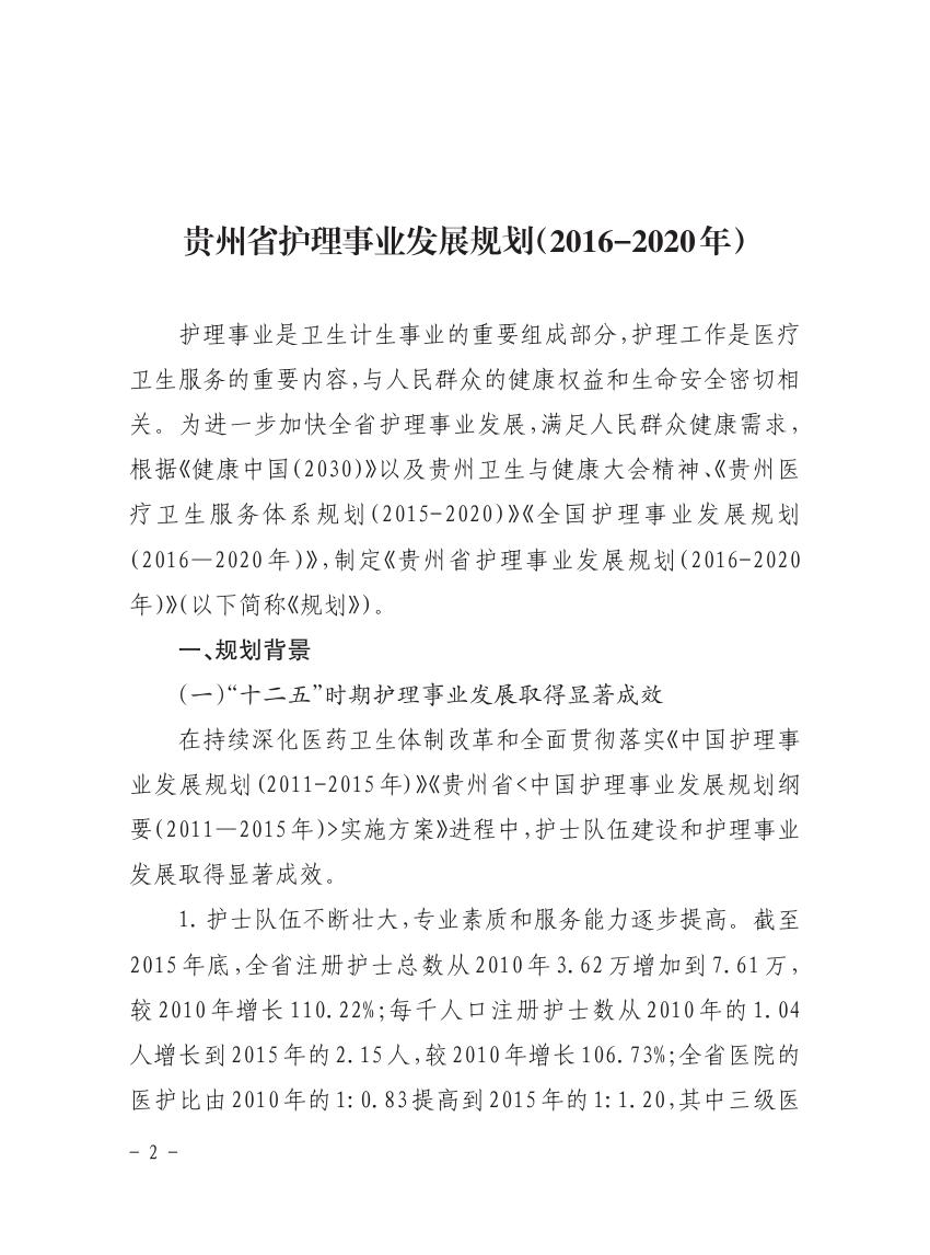 解读《贵州省护理事业发展规划(2016-2020年)》