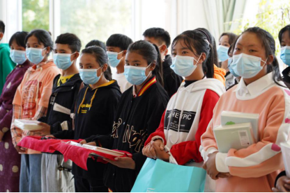 本次活动中,贵州医科大学老师向我院西藏班学生捐赠了共计342件衣物及112套文具用品。捐赠仪式上,贵州医科大学国资处处长张玲玲老师代表贵医大参加此次爱心捐赠的老师们向同学们表达了深切的关心和祝福,鼓励西藏班同学要“少年立志出乡关,学不成名誓不还”,大力弘扬爱国主义精神,把个人的前途命运与国家前途命运紧密联系在一起,奋发图强,为实现中华民族的伟大复兴贡献力量。李道群老师还向同学们转达了贵医大退休教师刘建华写给孩子们的一封信,信中字字情真意切,满载着这位长辈对孩子们的深情关怀和殷切期盼,衷心祝愿他们在多彩的贵州、在贵州护理职业技术学院学业顺利、生活快乐。西藏班学生代表索南曲珍身着民族服饰代表全班同学表达了感谢之情,并承诺将珍惜学习机会、勤奋刻苦,努力完成学业,不负青春、不负韶华,成为祖国边疆的守卫者、巩固者、建设者。我院学生工作处临时负责人毛红云老师代表我院全体师生表达了对贵医大老师们的爱心捐助的感谢,表示将按照“四个精准”着力培养西藏班同学,把西藏班同学培养成为新时代社会主义合格建设者和可靠接班人。