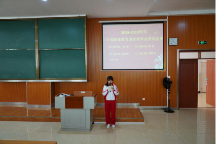 此次颁奖仪式对学院中职2017级校本部4名获奖学生颁发了荣誉证书,获奖学生分别发表了获奖感言, 获奖同学表示,非常荣幸获得中职国家奖学金奖项,这带给他们的不仅仅是物质上的奖励,更是精神上的极大鼓舞,感恩党和国家对中职学生的关心和鼓励,感谢学院教师及资助中心积极申报和帮助才有此次获奖机会,希望以后能继续努力学习,以自己所学一技之长回馈社会,报效祖国。