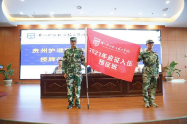 学院党委委员、副院长,新任命武装部部长潘忠伦为学院“预征班”授班旗。2020级高职4班学生代表沈杰做表态发言。他认为依法服兵役是青年应尽的义务,作为一名大学生,肩上担负着维护国家安全和建设祖国美好明天的重担。如能光荣入伍,到部队后一定会刻苦训练,努力学习,服从组织,尊重领导,努力学习军事技术,争做一名优秀军人。