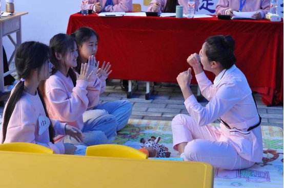 赛中,各位选手动作熟练、流程规范,完成了一系列与育婴相关的实际操作。同时,通过温柔的语言、亲切的笑容和适当的肢体动作,模拟与婴幼儿建立起良好的情感联系的过程,展现出了出色的专业技能和深厚的育婴知识。