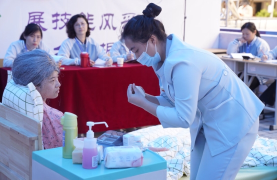 “养老护理项目”比赛要求选手在不同场景下(包括居家、社区及机构),为有需要的老年人提供生活照料、护理服务,满足老年人生理、心理、疾病康复等方面的需求,促进老年人身体、心理和社会方面健康。