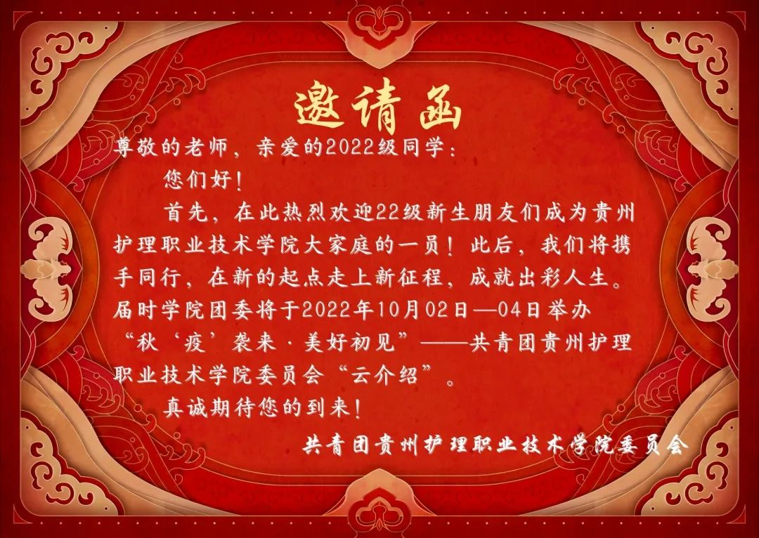 “秋‘疫‘袭来·美好初见”——共青团贵州护理职业技术学院委员会“云介绍”邀请函