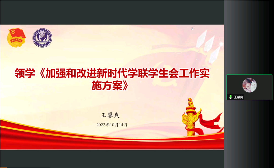 会议第五项:王馨爽老师领学《加强和改进新时代学联学生会工作实施方案》