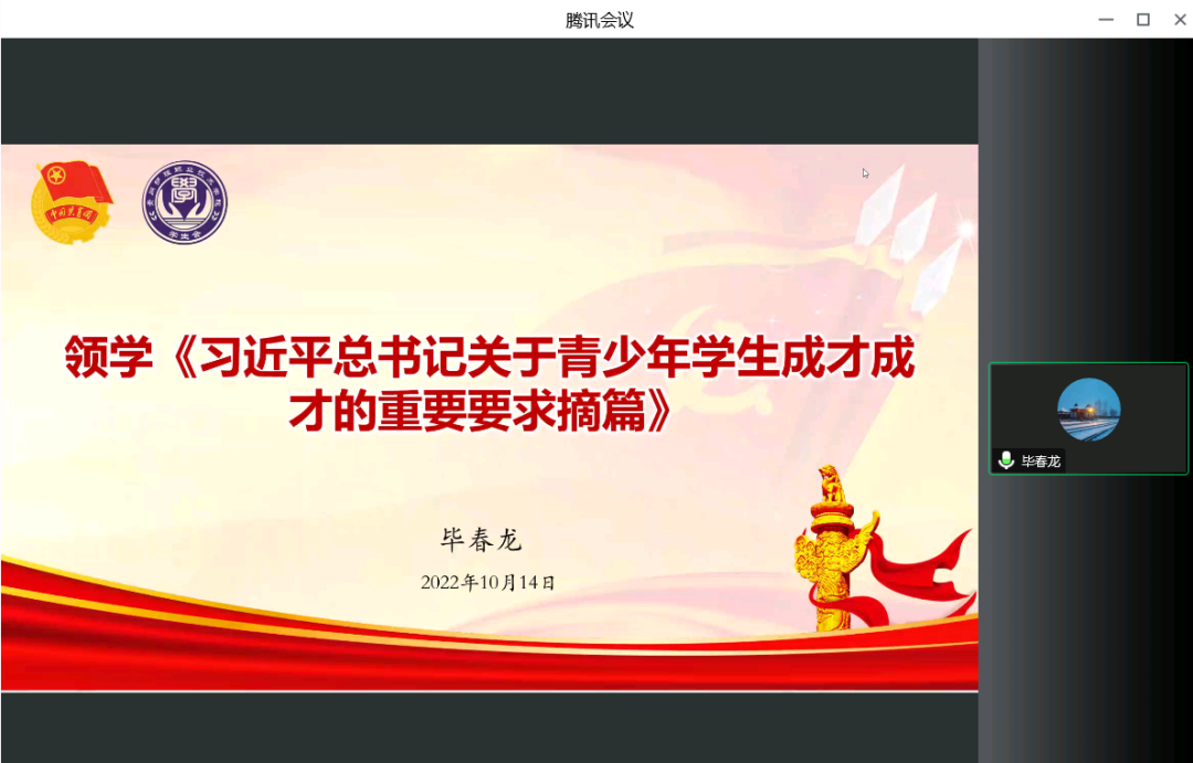 会议第六项:毕春龙老师领学《习近平总书记关于青少年学生成才的重要要求摘篇》
