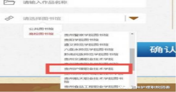 3.在下拉菜单中选择“贵州护理职业技术学院”,确认报名。