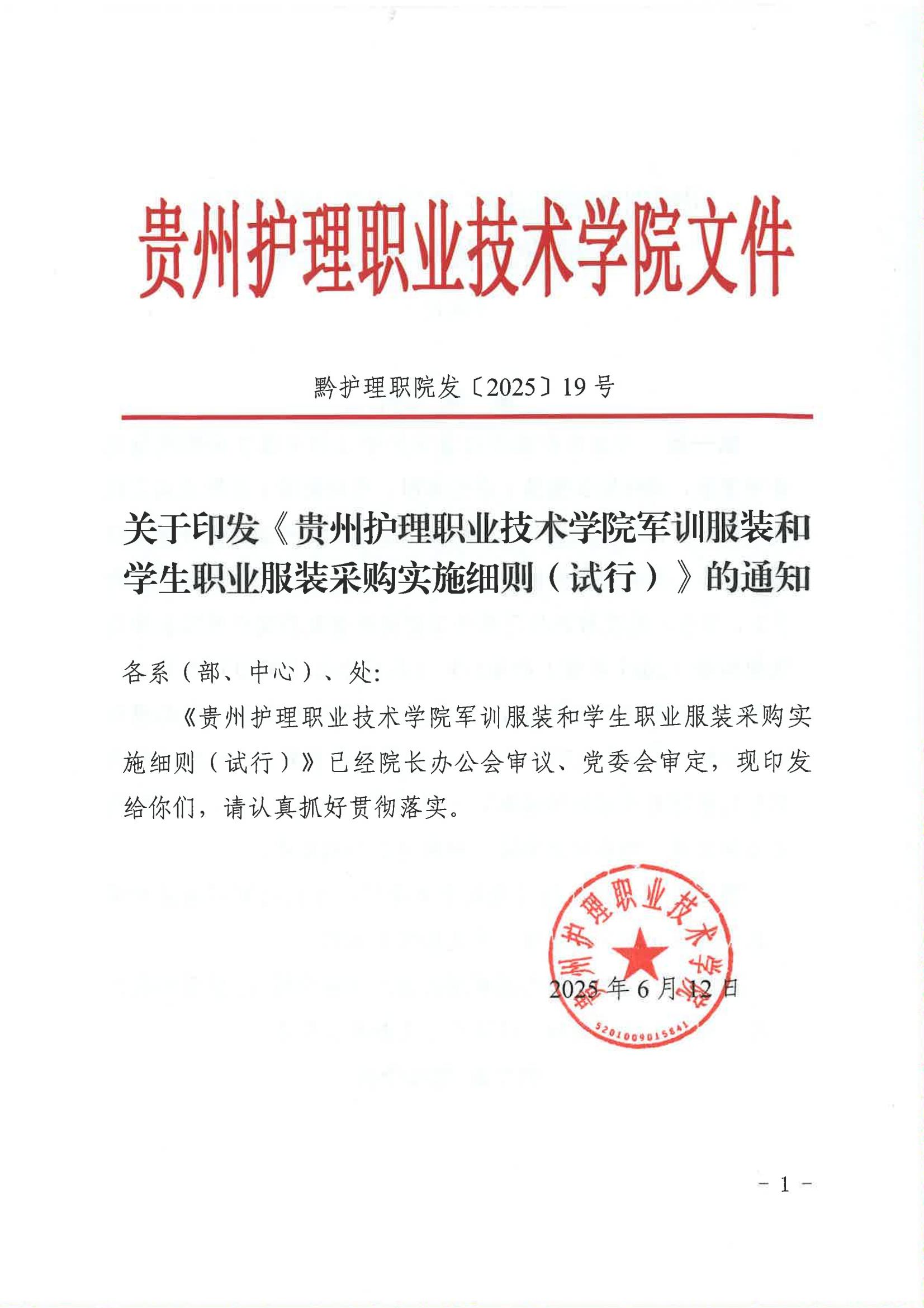 黔护理职院发〔2025〕19号关于印发《贵州护理职业技术学院军训服装和学生职业服装采购实施细则(试行)》的通知.pdf