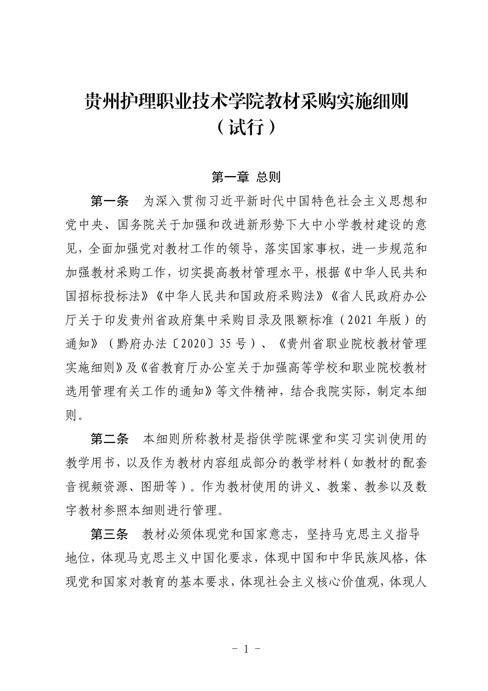 关于印发《贵州护理职业技术学院教材采购实施细则(试行)》的通知
